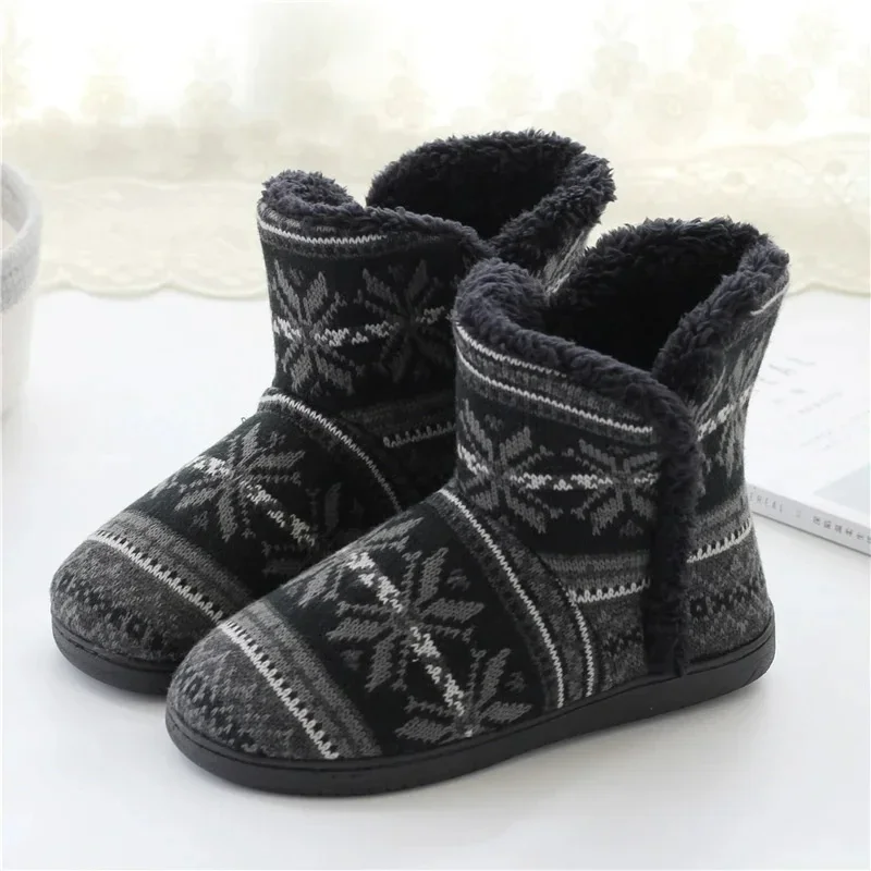 Diese kuscheligen Plüsch-Hausschuhe im Bootie-Stil sind der perfekte Begleiter für kalte Wintertage.