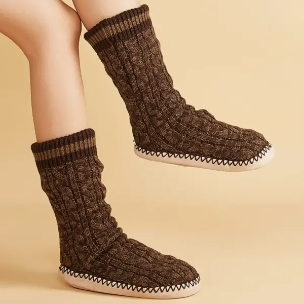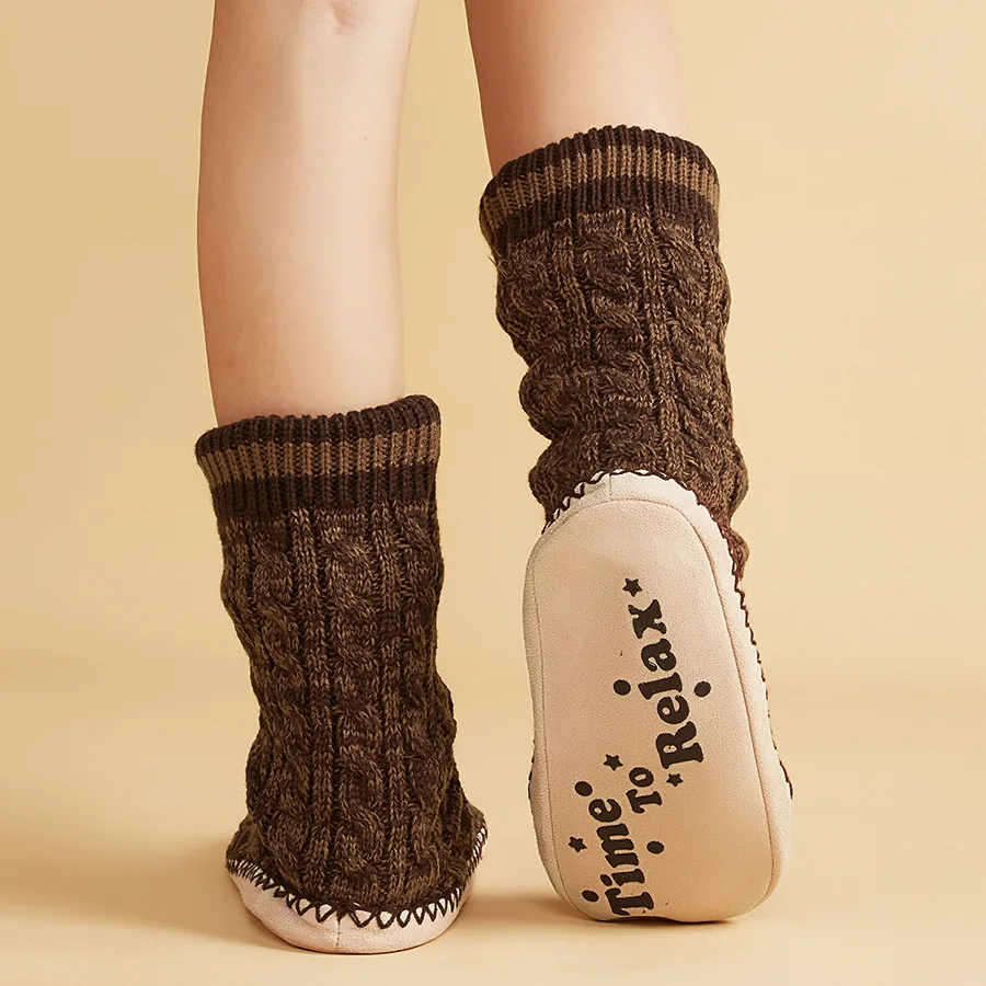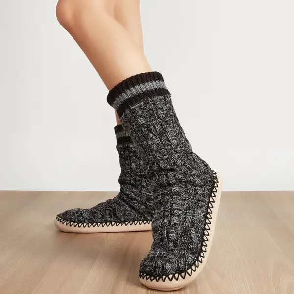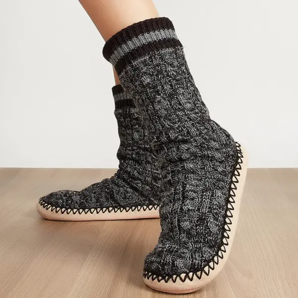 Dank des flexiblen Designs fühlen sie sich an wie Haussocken, bieten aber den Komfort und die Stabilität von echten Hausschuhen.