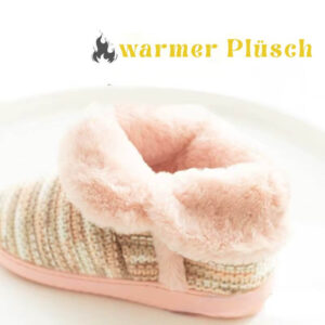 Diese warmen Hausschuhe für Damen vereinen Komfort, Stil und Funktionalität. Die weichen Strick-Stiefeletten mit Plüschfutter halten deine Füsse angenehm warm – perfekt für gemütliche Wintertage zuhause oder den Gang nach draussen.
