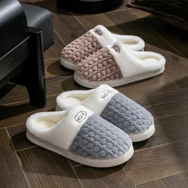 Das flauschige Design verleiht den Hausschuhen einen modernen, wohnlichen Look.